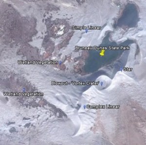 The dunes themselves vary in type. As stated earlier a broad range exists over a small spatial area.
