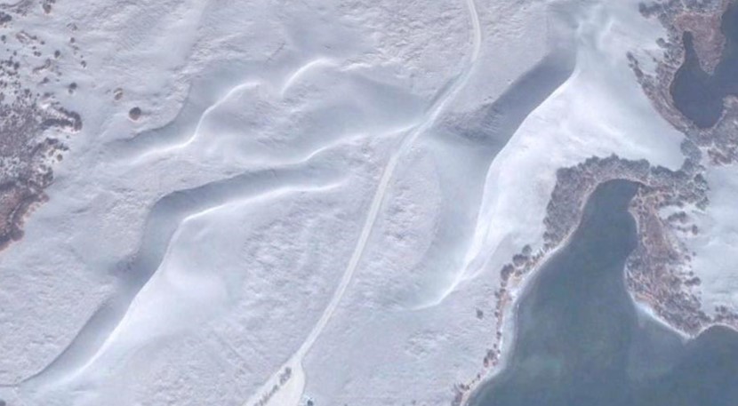 A star dune is located to the east of the Sand Dune Lake and is the tallest of the dunes at 143m (Fig 9). Star dunes are characterised by the formation of a central peak and three or more radiating arms. The star dune at Bruneau has three arms, the longest of which is 560m in length.